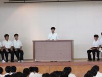 6月30日(金)、期末考査終了後、高校野球選手権に出場する野球部と九州大会に出場するソフトボール部と水泳の壮行式を行いました。