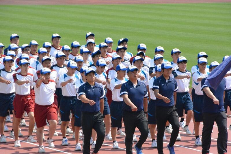 各団気合いが入っており、赤団(機械科)はW優勝、青団(電気科)は総合9連覇、黄団(建築科)はV奪還を目指し体育大会に臨みます。