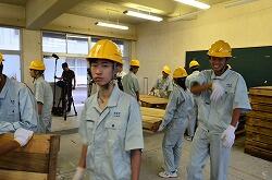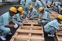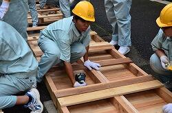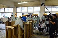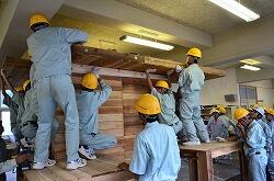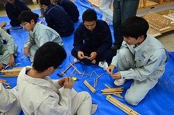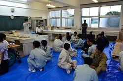本来は、1年生で12時間かけて行う実習を2時間に短縮して生徒に体験させました。短い時間でしたが、道具の使い方を学ばせることができ、中学生も丁寧に作業をしてくれました。建築について興味関心を深めさせることができました。この経験で建築士または大工が誕生するとうれしいです。