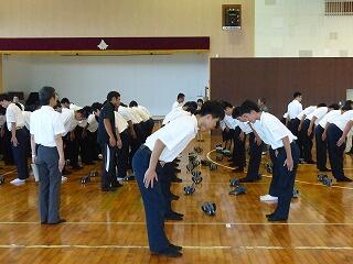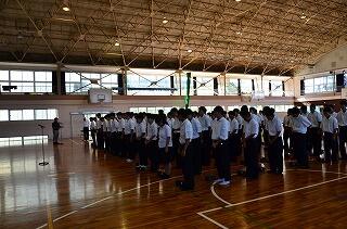 校長先生より、決して油断することなく全力でプレーをするようにと激励がありました。監督より選手紹介、主将より決意表明、生徒会長より生徒代表激励の言葉がありました。