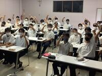 9月14日(水)、令和4年度就職・進学試験壮行式が行われました。各クラスの代表者、倉橋君、山元君、米良君が立派な決意表明をしてくれました。また、学校長より「自信を持って挑むように」と激励の言葉をいただきました。