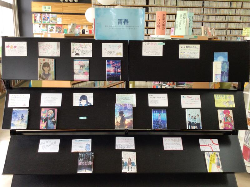 現在、文豪コーナーのほかに「青春をイメージしたおすすめの本」コーナーを設置しています。