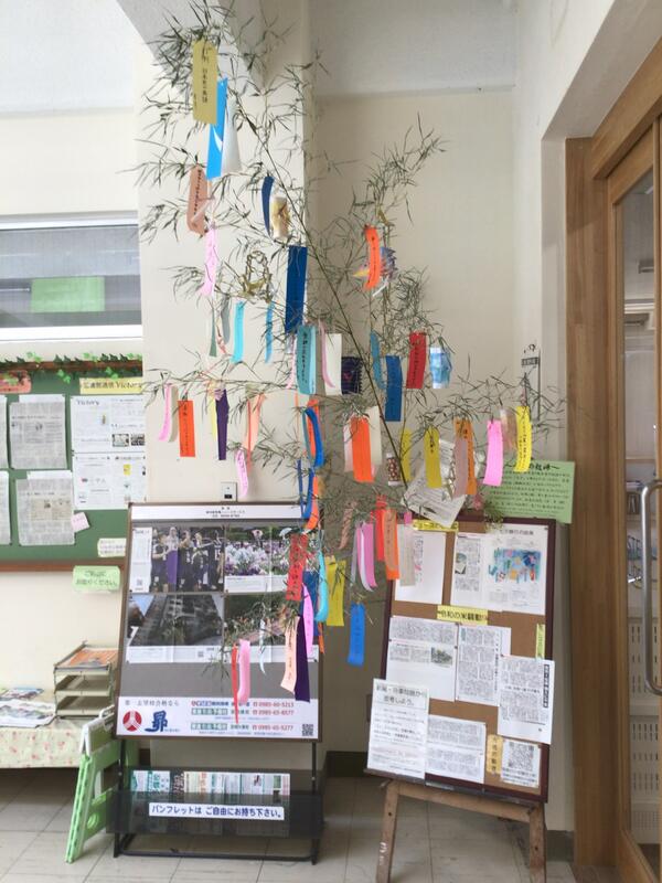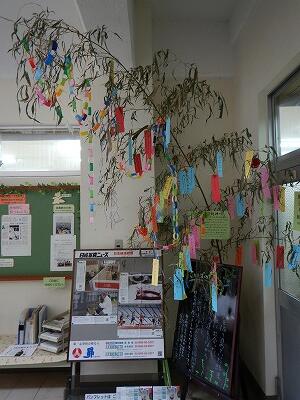 恒例の七夕飾りを図書館入り口に設置してちょうど1週間。