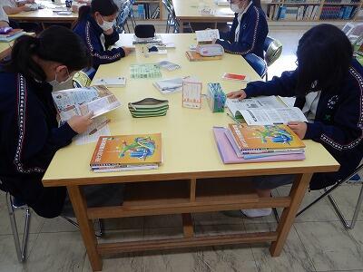 関連図書を一人1冊(別のクラスは3冊)手元に用意し、5分間点検読書する。それから