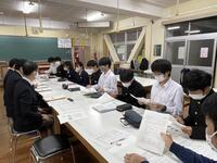 11月17日(木)に、副校長先生・教頭先生・進路支援部長の先生3人と生徒会で課外についての意見交換会を行いました。意見交換会を行うにあたって、生徒会では全校生徒に対して課外に関するアンケートをとりました。様々な意見を集積した上で、生徒会内で意見をまとめ先生方に報告をしました。