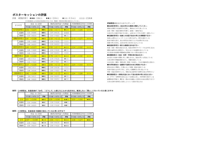 高校3年ポスターセッションにおける生徒自己評価および教員評価について