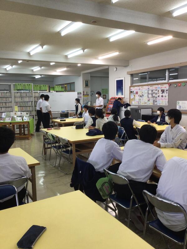 今日は先日1・2年の各クラスで行ったビブリオバトルの振り返りを行いました。各クラスごとに良かった点・悪かった点を出し合い、今後の活動の改善を図りました。また古本市での売上の利用方法についても話し合い、Yogiboと壁掛け時計を購入することになりました!50周年記念に行われる山中伸弥教授の講演の事前学習として、朝の読書の時間に動画の視聴と資料の配布を行うことについての事前説明もありました。各クラスの図書委員を中心として講演会にしっかり備えたいと思います。                                   1年図書委員 S