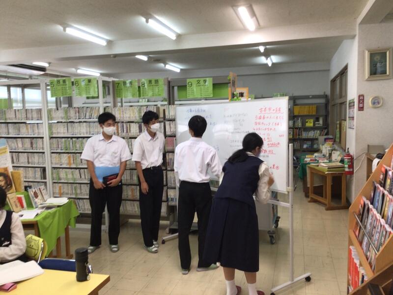 第5回図書委員会では、文化祭の古本市と、1学期の反省、2学期の活動について話し合いを行いました。古本市の反省点を役割ごとに話し合い、3年生の意見も参考にしつつ改善点を見つけました。2学期の活動についての話し合いでは、昼休みのカウンター当番についての意見が多く出ました。この意見を参考にして、皆さんがより快適に図書館を利用できるようにしていこうと思います。そして古本市の売り上げを以前は寄付していましたが、今年は目に見える形で活用することになりました。図書館のご利用をお待ちしています。(1年 図書委員 Y S)