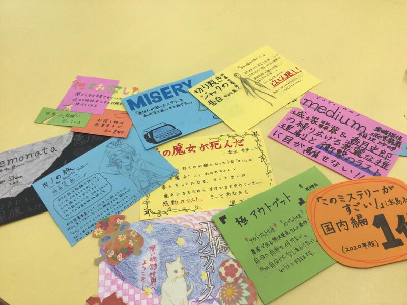今回は一年間の活動の総まとめと、各図書委員のベストブックを選びPOPを作成しました。今年の皆さんのベストブックは何ですか?私たちは「滅びの前のシャングリラ」と「下鴨アンティーク」です。POPは完成次第順次飾っていきますので、ぜひ図書館へ遊びに来てください! 【お知らせ】3年生の方の中で、参考書や単語帳、文庫本、ハード本など不要になった本を寄付していただける方を募集しています。来年度の朝陽祭の古本市に使用します。ご協力お願いします╰(*´`*)