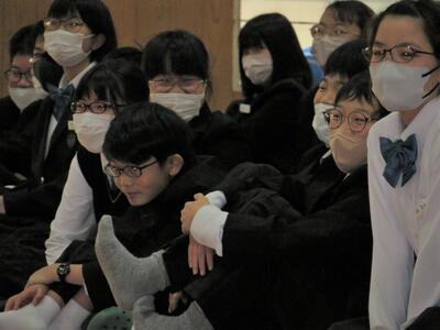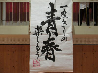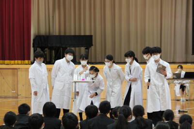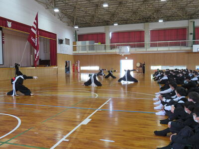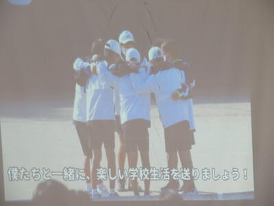 西附の1年生に向けて、高校の応援団よりエールをもらいました。そして中学生徒会メンバーの紹介後、各部活動の紹介がありました。練習で培った技や寸劇のようなパフォーマンスを披露する従来のスタイルもあれば、工夫を凝らした動画もあり、会場が笑いと驚きの声に包まれていました。1年生の皆さん、これからの学校生活を充実したものにしてください。