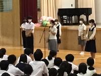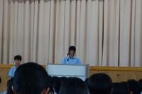 8月20日 中・高合同の2学期の始業式・表彰式後に中学部集会を行いました。各学年・生徒会の代表4名の生徒が、1学期の反省や課題を踏まえて2学期の目標を述べました。