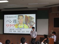 令和7年9月13日 夏休み期間に宮崎市の事業で姉妹都市である韓国の報恩郡を訪問した林田吏世さん(1-2)が、宮崎市民プラザで行われた報告会に参加しました。共に研修に参加した市内の中学生と分担をしながら、研修日程や観光先、日々の食事などプレゼンテーションを使って説明してくれました。5日間の研修で、「言葉が違っても相手を理解しようとすることが大切」だと感じたようです。11月には報恩郡の中学生が宮崎を訪れて、再度交流を行う予定だそうです。