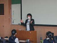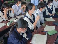 令和4年11月9日(水)、3年生の感性の授業において、短歌誌「心の花」所属の歌人 大口 玲子 氏 を講師にお招きして短歌の学習会を開催しました。