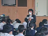 6月30日 2年生を対象に、宮崎市健康支援課の方を講師に「SOSの出し方教室」を実施しました。講話や相談の効果を体験する”コップの実験”などを通して、自分を大切にすることや苦しいときにSOSを出すことの重要性について学ぶことができる貴重な時間となりました。