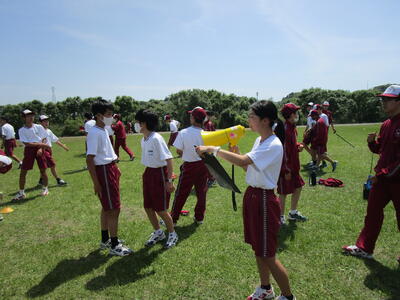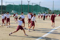9月3・4・5日に行われる朝陽祭に向けて、中学生も毎日練習をがんばっています。体育の部の競技は、1・2年生は70M走、3年生は全員リレーと集団行動となっています。また、全学年で行う競技は団技(アジャタ)とソーラン節です。また、プログラムの最後には団対抗リレーが準備されています。2日に予行練習がありましたが、多くの競技で接戦が見られました。当日は、これまで積み重ねた努力が形となって表れることと期待しています。