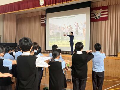 5月26日に学校保健委員会の一環として、岡田整形外科の理学療法士 大山 史朗氏による健康講話が行われました。演題は、「学力UP・目標達成をグッと引き寄せる!頭脳をアップグレードする『運動』の秘訣」。とても興味深いテーマにみんな興味津々。講話が終わった後の感想には、「運動を取り入れながら勉強したい」という感想が多く見られました。「脳」をリフレッシュさせるためにも適切に「運動」を取り入れ、目標達成に近づきたいですね。
