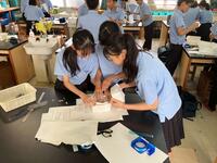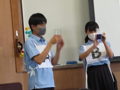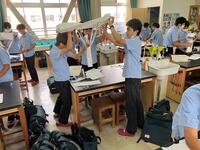 6月20日 科学の甲子園Jr.の県大会に向けた校内予選の実技審査が行われました。審査の内容は、A4普通紙10枚とセロハンテープだけを使って容れ物を作り、高い所から落としても中に入れた生卵が割れないようにすること。参加した生徒は限られた時間で知恵を絞りながらオリジナルの容れ物を作りました。11チームが参加し、4チームの生卵が割れずに落下するという結果になりました。「試行錯誤」することからひらめきやアイデアが生まれるのですね。とても面白い予選会でした。