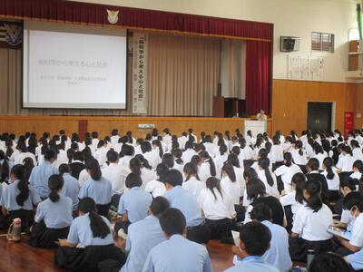 6月20日 理数科・理文クラス講演会に中学3年生も参加しました。講師は、東京大学大学院総合文化研究科の四本裕子教授で、「脳科学から考える心と社会」と題した講演会でした。中学3年生は高校に接続する1年間となるので、このように高校生と一緒に学習をしたり、理数科について説明や授業参観を通してさらに詳しく知ったりするような、進学を意識したプログラムが用意されています。残り8ヶ月を西高理数科0年生としてどう過ごすかしっかり考えて、意識や意欲を高めていきたいですね。