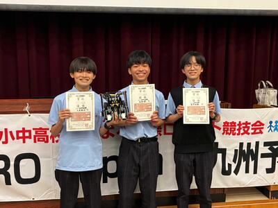 7月26日 数学プログラミング部が、ロボットプログラミング大会の南九州予選に参加し、岩本佑都さん・松原敬さん・大屋陸功さんチームが見事優勝しました。おめでとうございます。優勝した3名は、8月末に行われる全国大会に出場します。