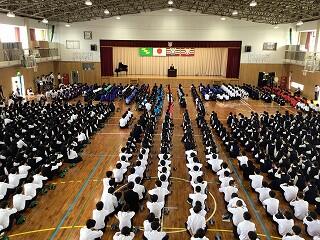 体育館にて、第101期生徒会総務委員退任式並びに第102期生徒会総務委員任命式が執り行われました。