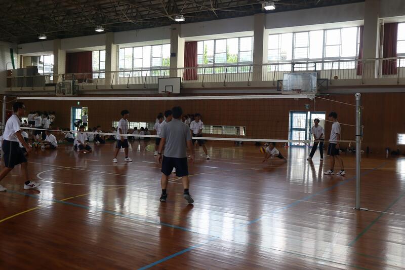 この日は先週延期になったクラスマッチの予備日。これ以上の延期はなく、雨天時は2時間ずつ3クラスずつのミニバレーの予定で残りの時間は授業。それだけは何としても避けたい。いや、どうしてもクラスマッチを通常の予定で行いたいという51期生の執念はこの秋の梅雨以上の雨空をも吹き飛ばした。しかも前日は記録的な線状降水帯が発生したのにもかかわらず。