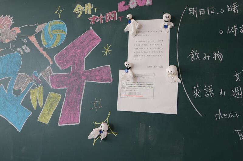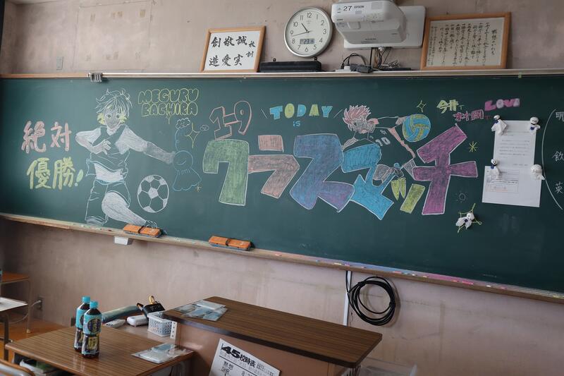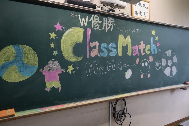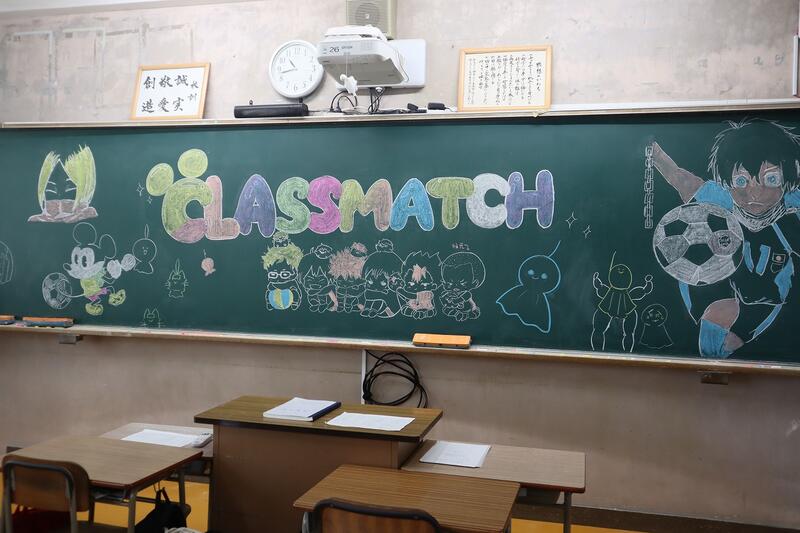 各クラスの黒板には自然発生的に意気込みとてるてる坊主が。そして当日の笑顔☺ 朝早くから部活動生や体育委員、有志によるグランド整備や準備のおかげで予定通りサッカーとバレーを実施し、大きな怪我もなく入学後半年たったクラスの絆がより一層強まった一日となりました!