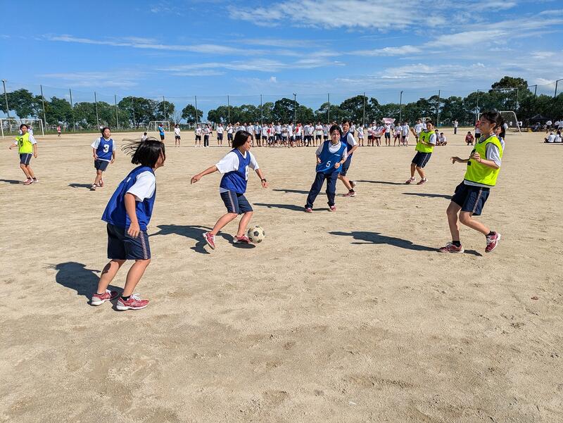 昼食を挟み、午後は学年行事 3年はドッジボール 2年は7人8脚 1年は三つ巴ドッジボール どれも白熱した戦いでクラスの絆が強まりました。