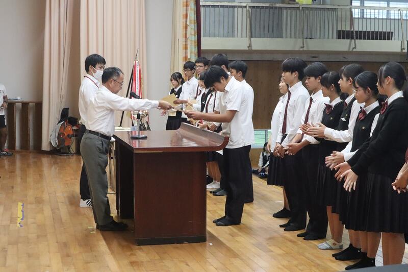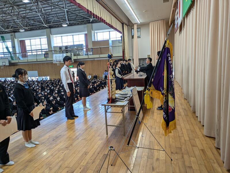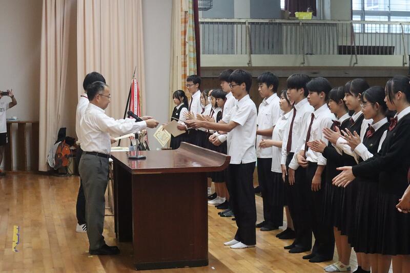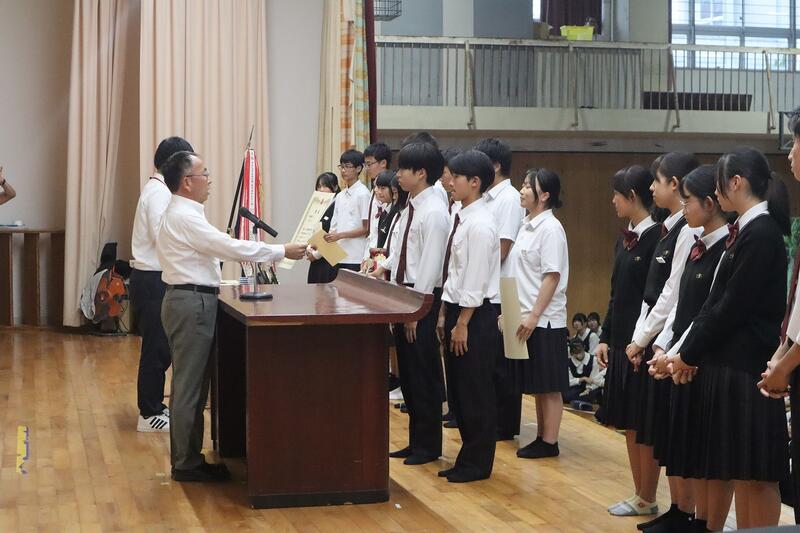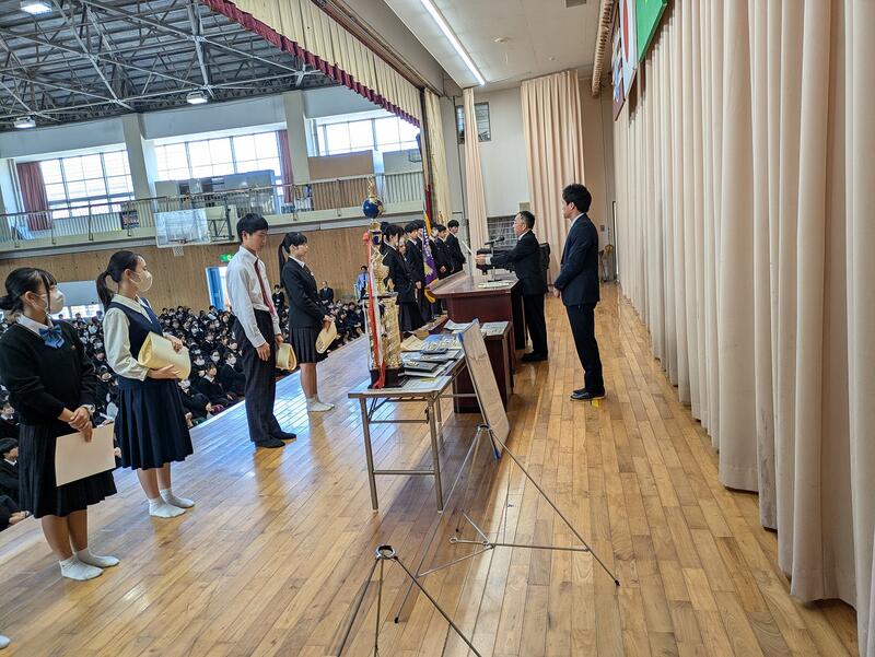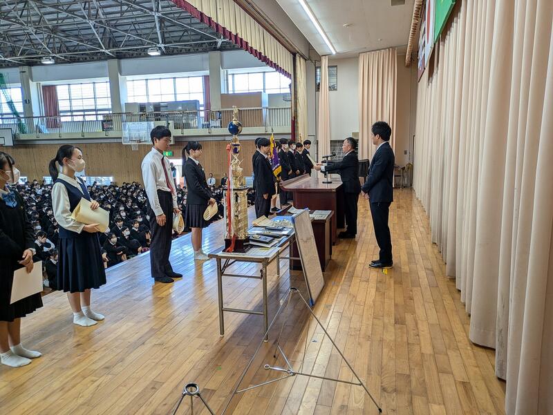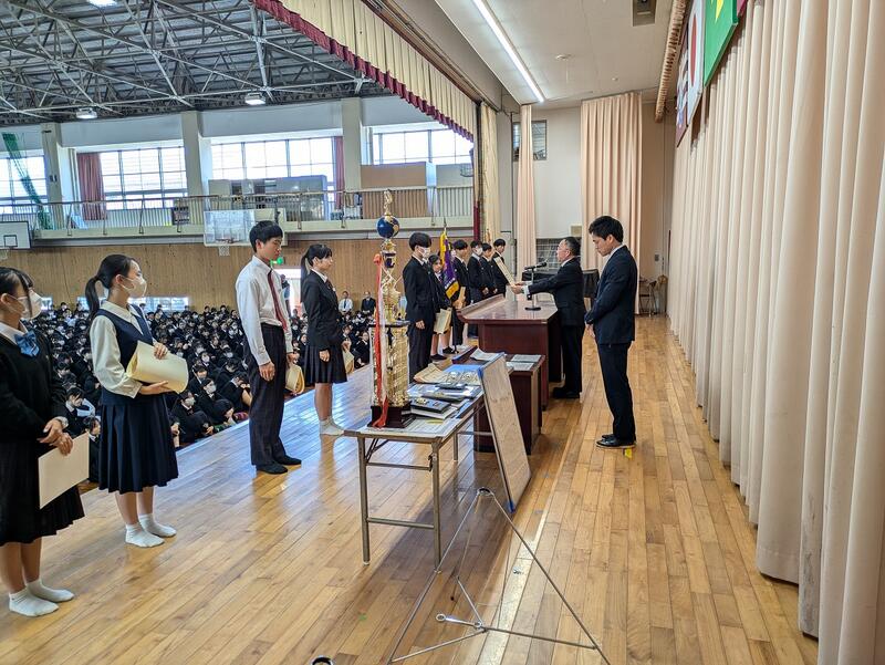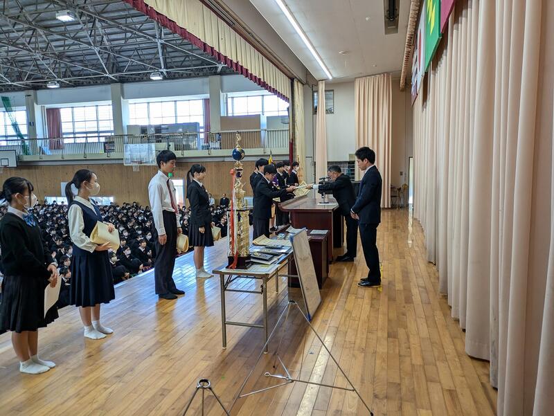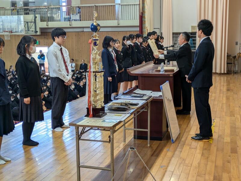 終業式の前に直近の大会における表彰式が行われました。該当者は以下の通りです
