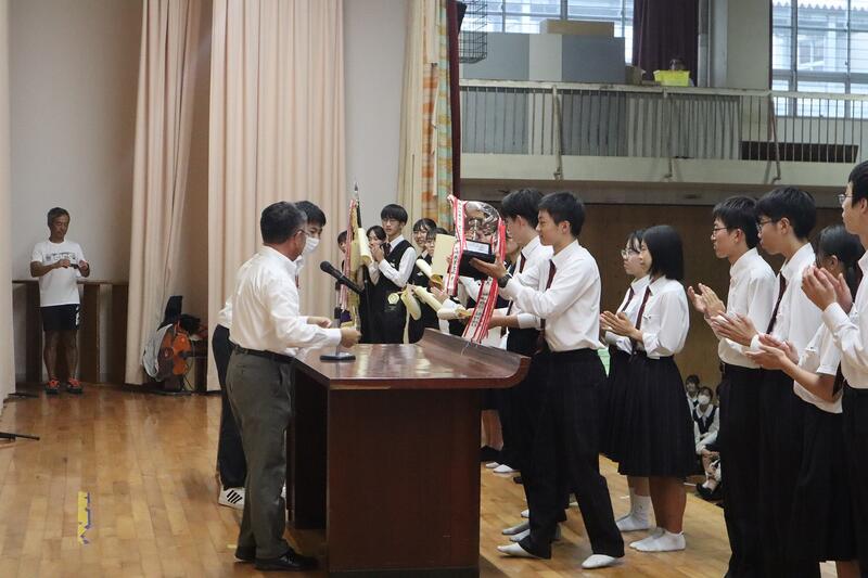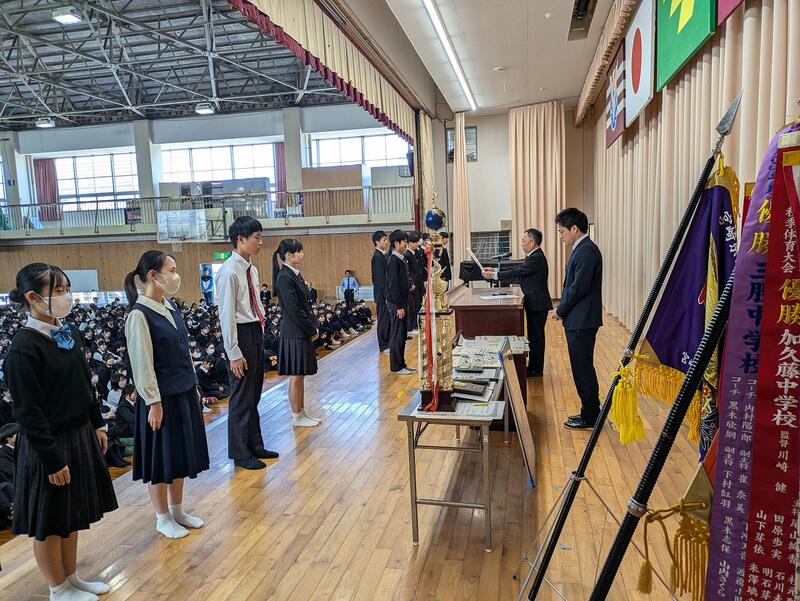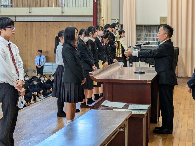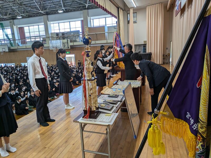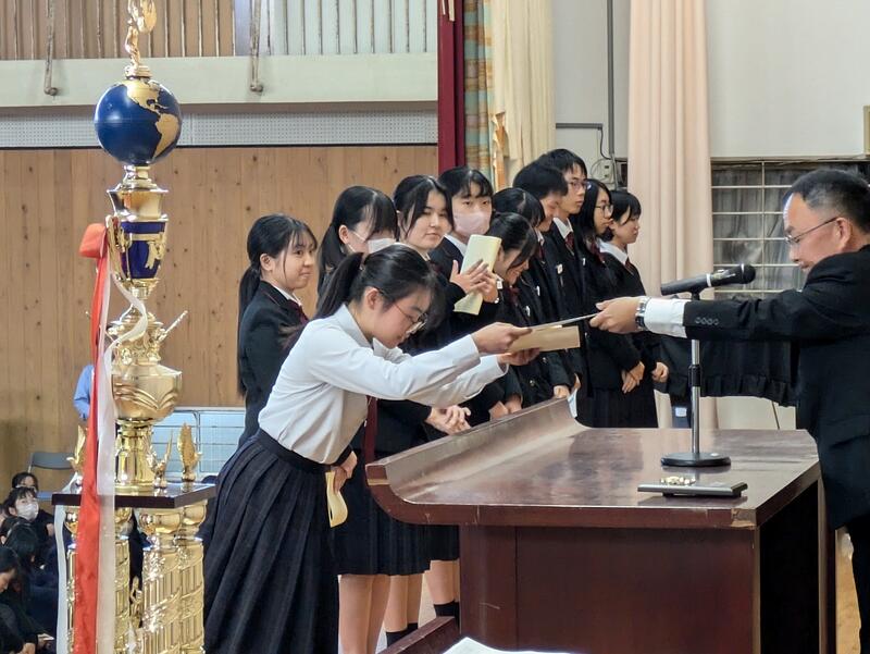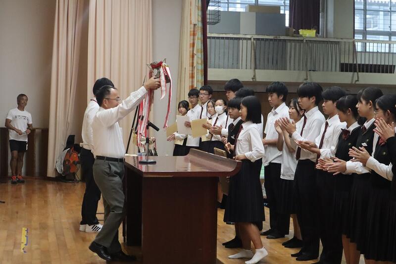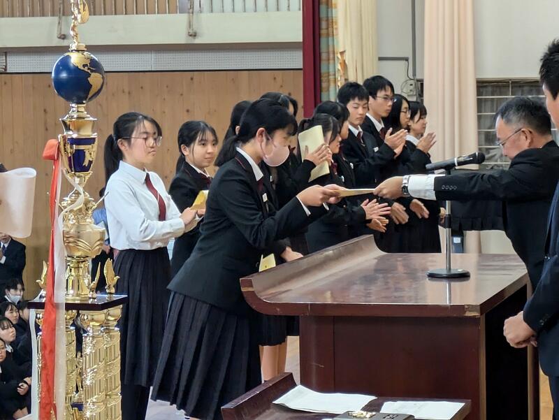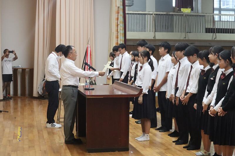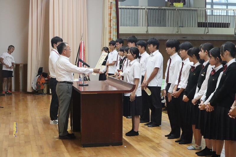終業式の前に直近の大会における表彰式が行われました。該当者は以下の通りです