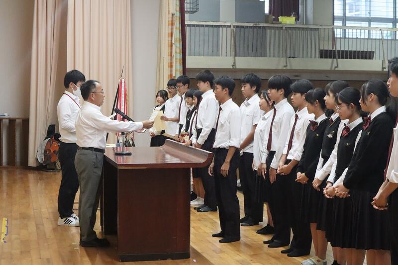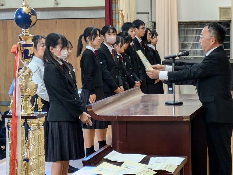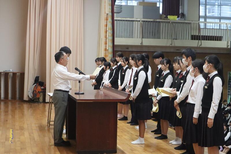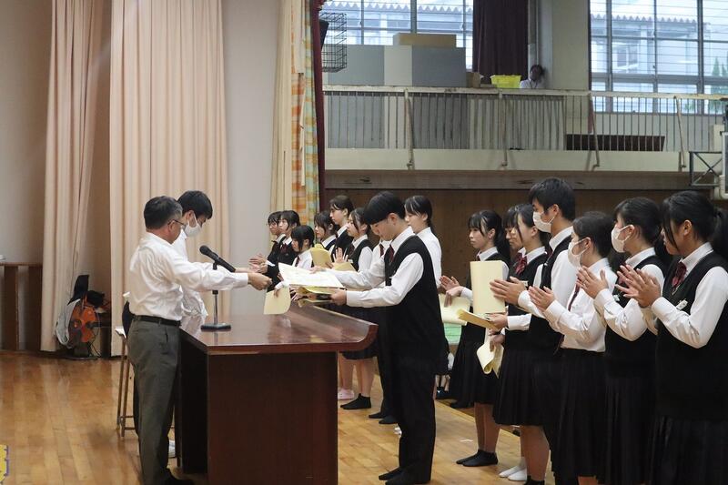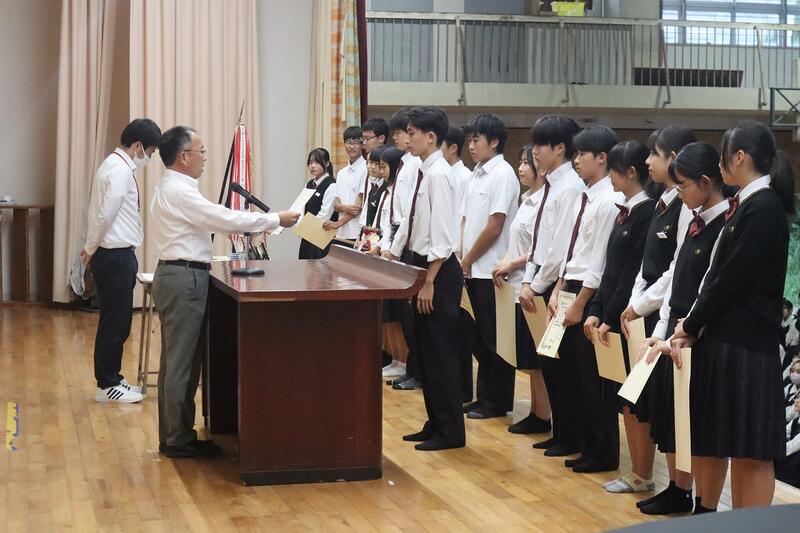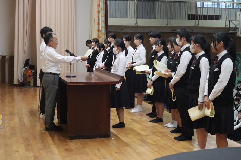 各活動において活躍が認められた生徒への表彰伝達披露式が行われた。