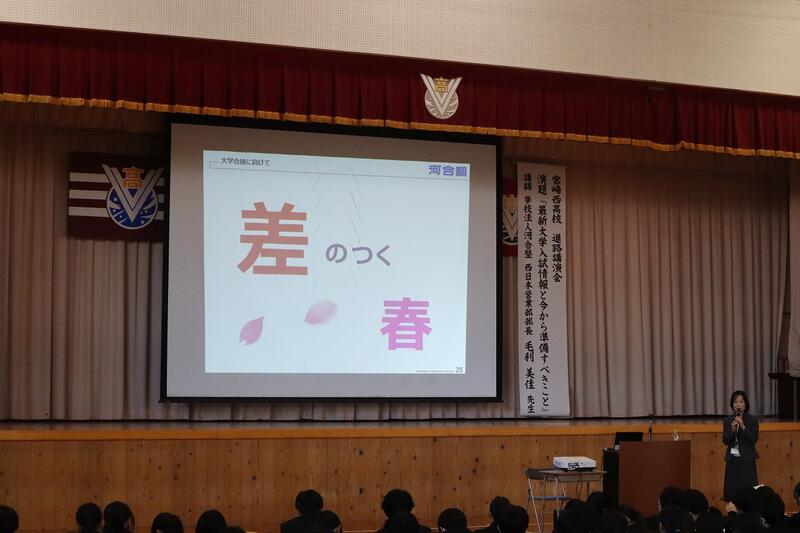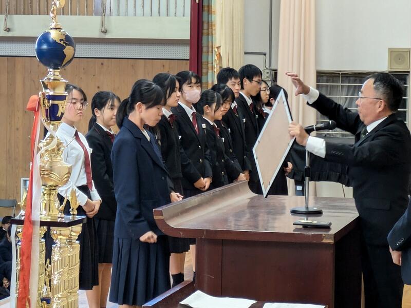 『これからの社会で経験するであろう「板挟み」と「想定外」をたくましく乗り越えて自らの道を進んでいってほしい。そのうえで忘れてほしくないのは「板挟み」や「想定外」に、柔軟に対応できるのは、機械やAIではなく、心がある人間であること。他者の価値を尊重しつつも自分の存在をよりたくましくしたいものです。その存在を危うくするのは「戦禍と紛争」です。宮崎西高の卒業生は世界のいずこにあろうとも、自らの存在の前提となる日本や郷土の存在を支える人であってほしいと強く願います。皆さんが、これから踏み出す新しいステージが希望ある未来につながることを信じています。』