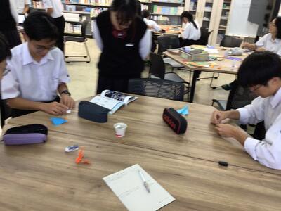 本日(10月21日)の各種委員会では、日本の文化・折り紙を図書委員で折り、展示用・お土産用に準備しました。