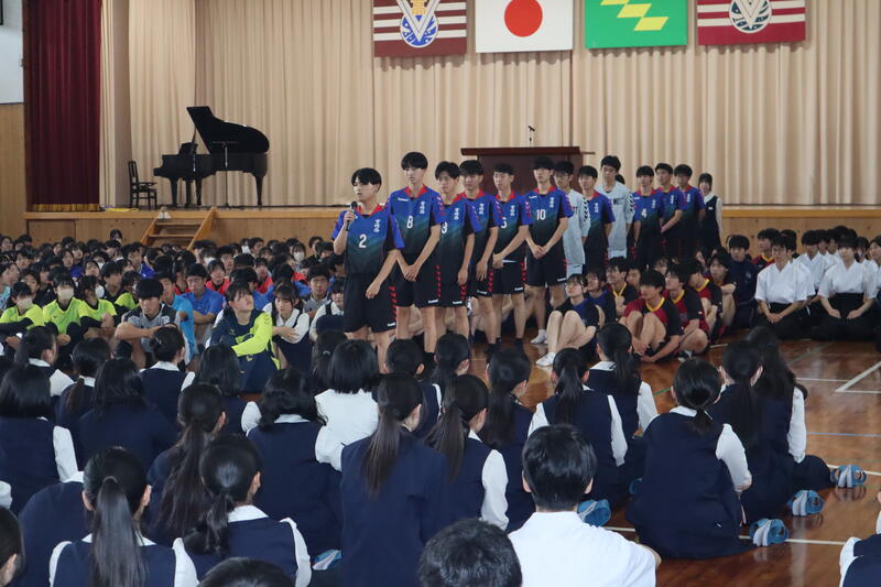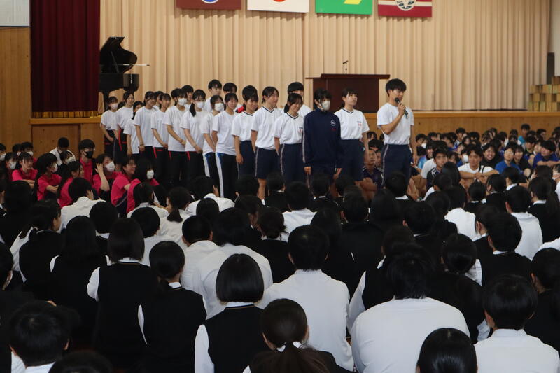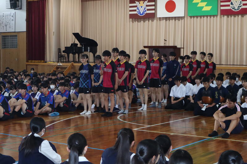 その後男子バスケットボール部主将の平野伸くんが力強く選手宣誓を行い、応援団のエールと演舞で締めくくりました。全部活動の健闘を祈ります!!