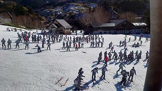 生徒たちは少し凍った雪にも臆せずにビュンビュン滑っています。