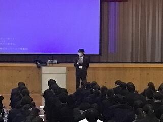 1月12日(金)の4限目に高校3年生の共通テスト事前集会(激励集会)が行われ、校長先生や学年主任の先生から激励のことばがありました。