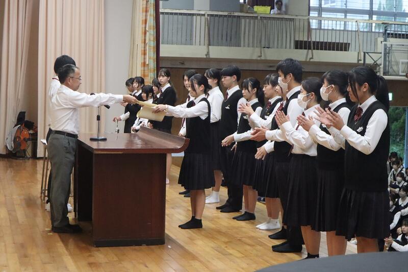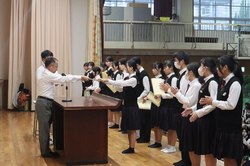 各活動において活躍が認められた生徒への表彰伝達披露式が行われた。