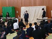 令和5年1月27日(金)、チンドン屋・花ふぶき一座座長の宮田若奈氏を講師にお迎えして、立志式に向けた講演会を開催しました。自らの生き方や進路について視野をより広げると同時に、社会貢献や郷土愛について深く考えるきっかけとなったようです。