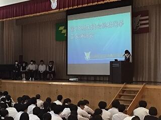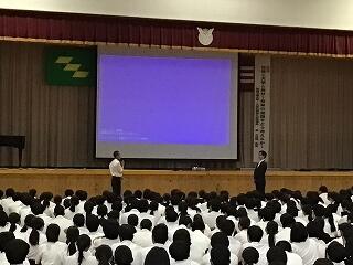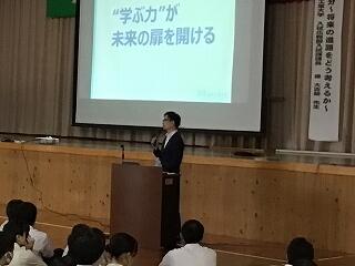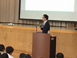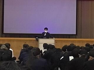 70分間の講演の後、生徒代表として2年5組の野﨑 鼓太朗さんが後氏への謝辞とともに、「今回の講演のお話しを参考にして自分の目標を再確認し、これからの学習に生かして行きたい」という決意を述べてくれました。