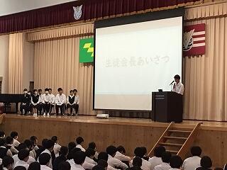 生徒会長の浜田昊輝さん(理数科2年)は「先輩方が繋いできた50年の伝統を100周年に向けて受け継いでいきます。」と力強く贈る言葉を述べました。