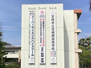 日本地学オリンピックにおいて金賞を受賞し、国際地学オリンピックの日本代表に選出された松尾京佳さん(理数科3年)の栄誉を称え、国際大会での活躍を期して、正門横に懸垂幕を設置しました。
