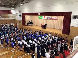 6月30日(金)は、3限目までで期末考査を終えたあと、体育館において甲子園予選および九州・全国大会等の壮行式を行いました。