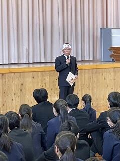 終業式では谷口校長が、コロナ禍で考えさせられた「命を守る」ことに触れられ、自転車通学時のヘルメット着用について改めて話をされました。本校では、令和6年4月からの自転車通学時のヘルメット着用を生徒議会で協議して決めました。自分の夢に向かって充実した高校生活を送るための準備の春休みとして下さいという意味を込めて、「自由を謳歌する準備をしましょう。」と締めくくられました。