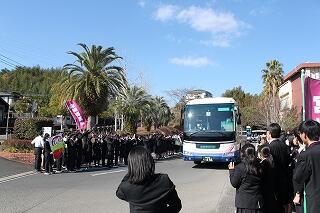 生徒会を代表して、宮脇寧々さん(理数科2年)が「最後の1分1秒まで全力を尽くしてきて下さい。」と激励の言葉を贈りました。