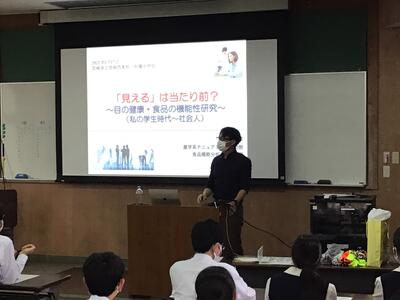 なお、今回の講演は、3密を避けるために、高校2年生のみが体育館、その他の学年は各教室へのリモート配信で参加しました。