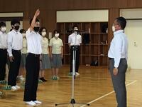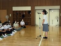 令和4年7月22日(金)、体育館において、1学期終業式を実施しました。終業式の中では、宮崎地区総合体育大会及び第39回全国児童生徒俳句大会の表彰を行いました。また、各学年と生徒会代表による「1学期の振り返り」の発表も行われました。
