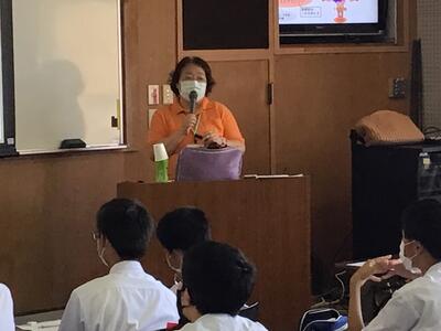 中学1年生にも分かりやすいように、ユーモアを交えながら話をしていただき、あっという間に時間が過ぎたようです。