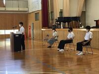 校内オンラインによる始業式のあと、徳耕心、そして体育館で中学生集会を実施しました。各学年と生徒会の代表者が「2学期の抱負」について発表しました。