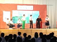 今年の中学劇は、「応援歌」(作:斉藤俊雄)で、新型コロナウイルスの影響で、演劇部の大会や学校行事が中止になる中でも、「いのちの歌」という応援歌に励まされ、小さな希望が見えてきた。というストーリーでした。自分たちの今の生活と重ね合わせながらの演技に、涙を流す観客の姿も見られた、素晴らしい発表でした。