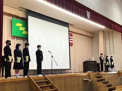 生徒一人一人の『決意表明』に加えて、式の最後には、実行委員会が作成した『誓いのことば』を全員で唱和し、14期生のさらなる飛躍を誓い合いました。
