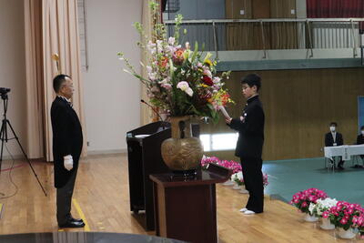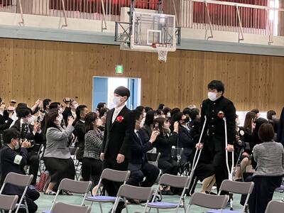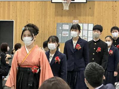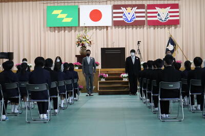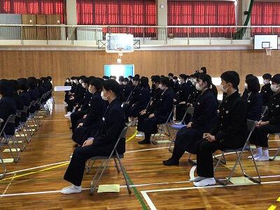 また、新型コロナウイルス感染拡大防止を図るため、在校生は各教室でオンラインによる参加となりましたが、卒業生の凛とした姿に、強い憧れを抱くことができたようです。